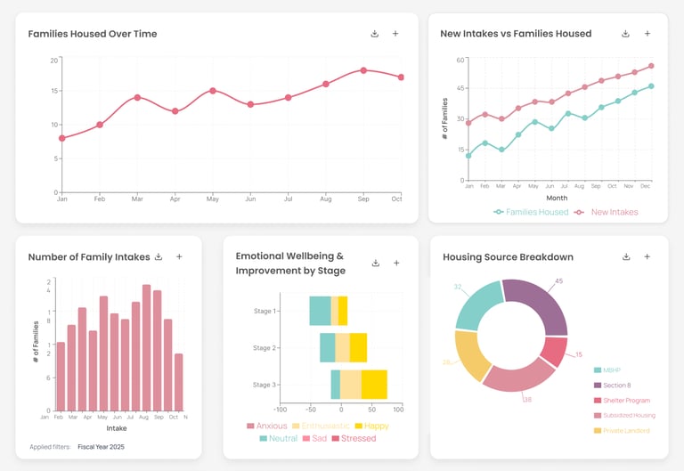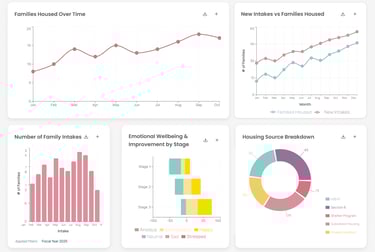 The project involved transforming complex Salesforce datasets, primarily housing reports, into and intuitive and user-friendly dashboard designs that support clearer insights and data-driven decision-making for the organization.